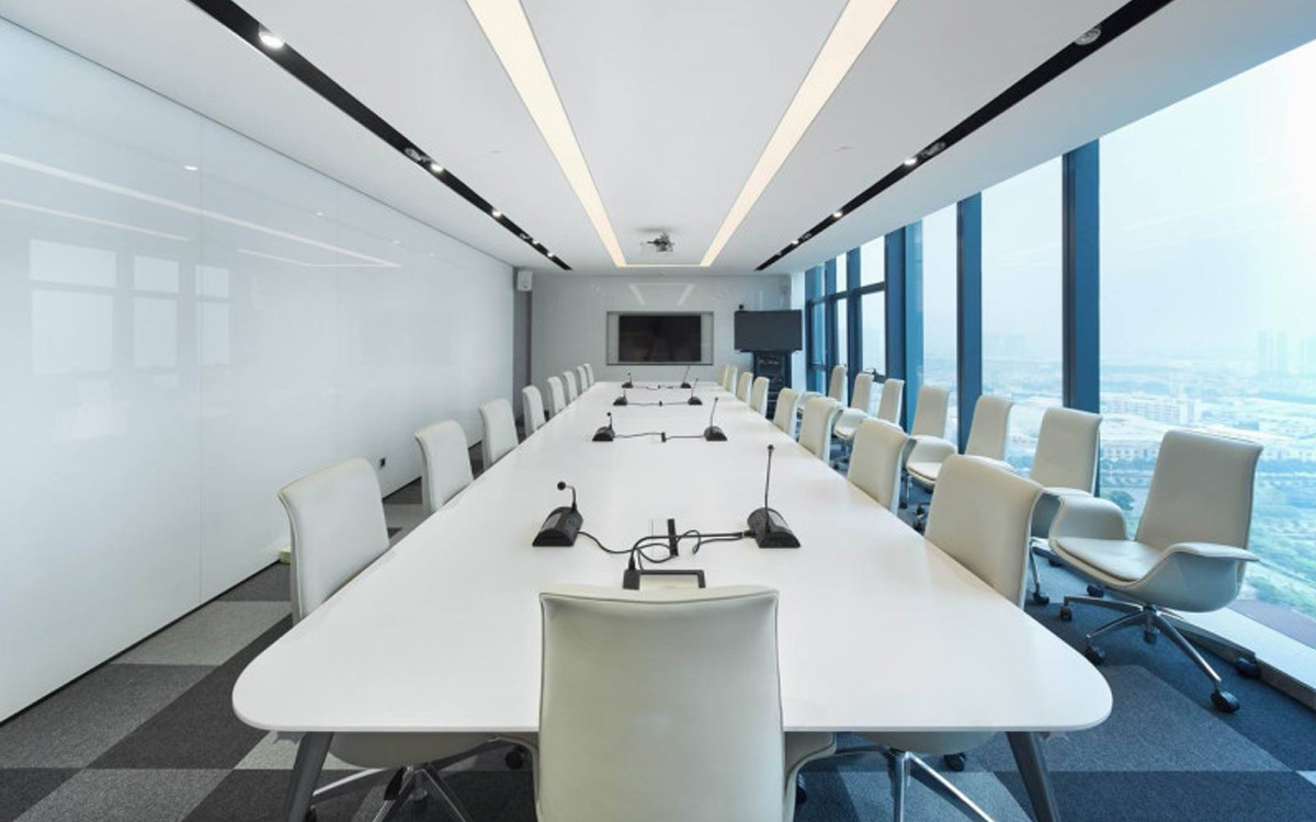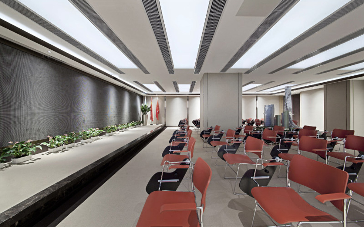 唯一有區(qū)別的就是該客戶他們需要一個保密室,需要做到單獨的監(jiān)控和網(wǎng)絡(luò),并用實體磚墻,整體效果非常的現(xiàn)代,用紅色作為點綴,黑色線條作為線面裝飾,地面用淺色地磚。