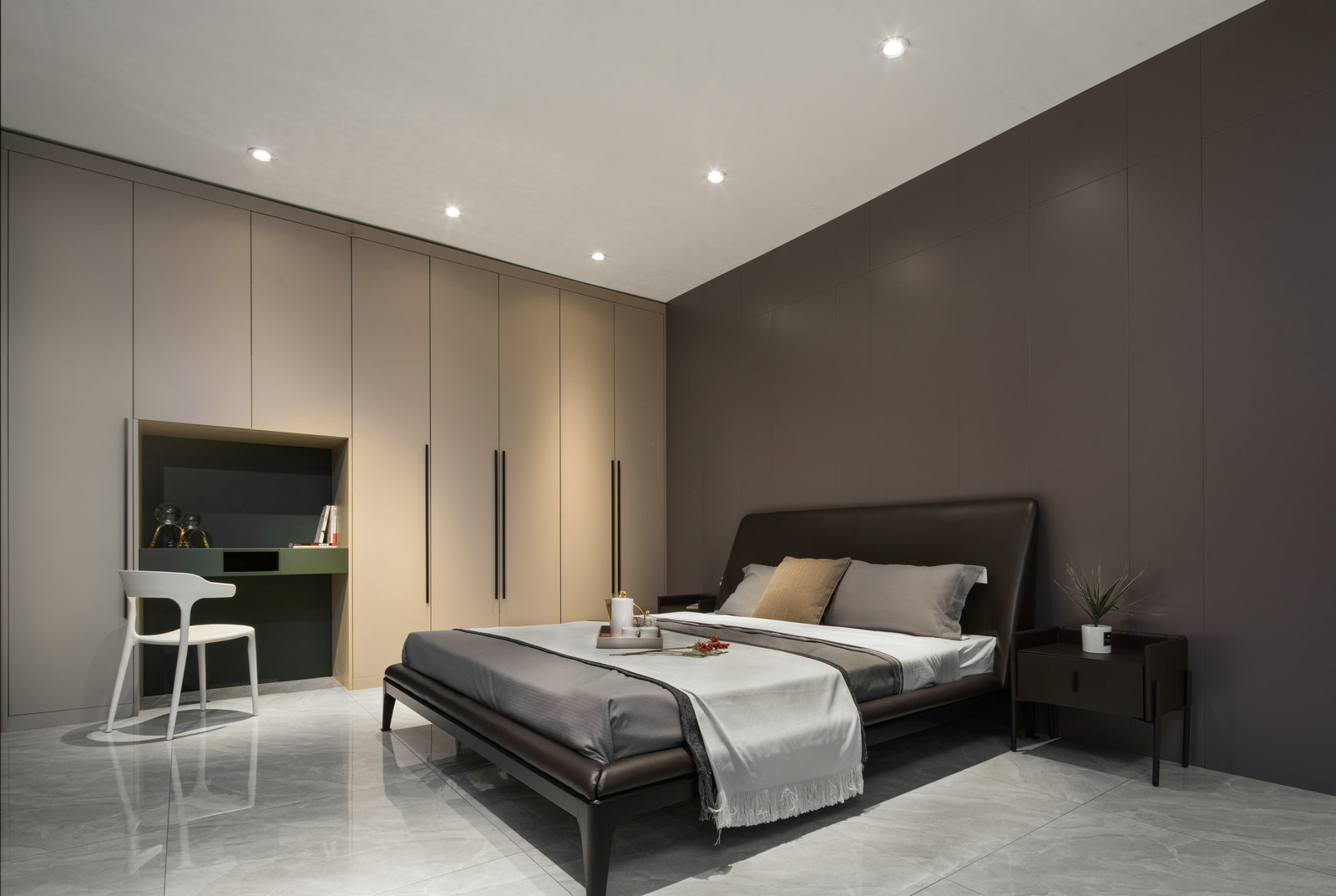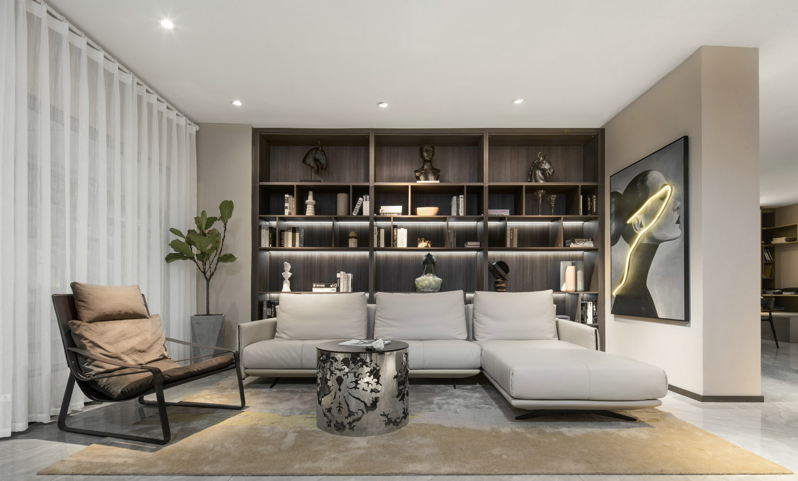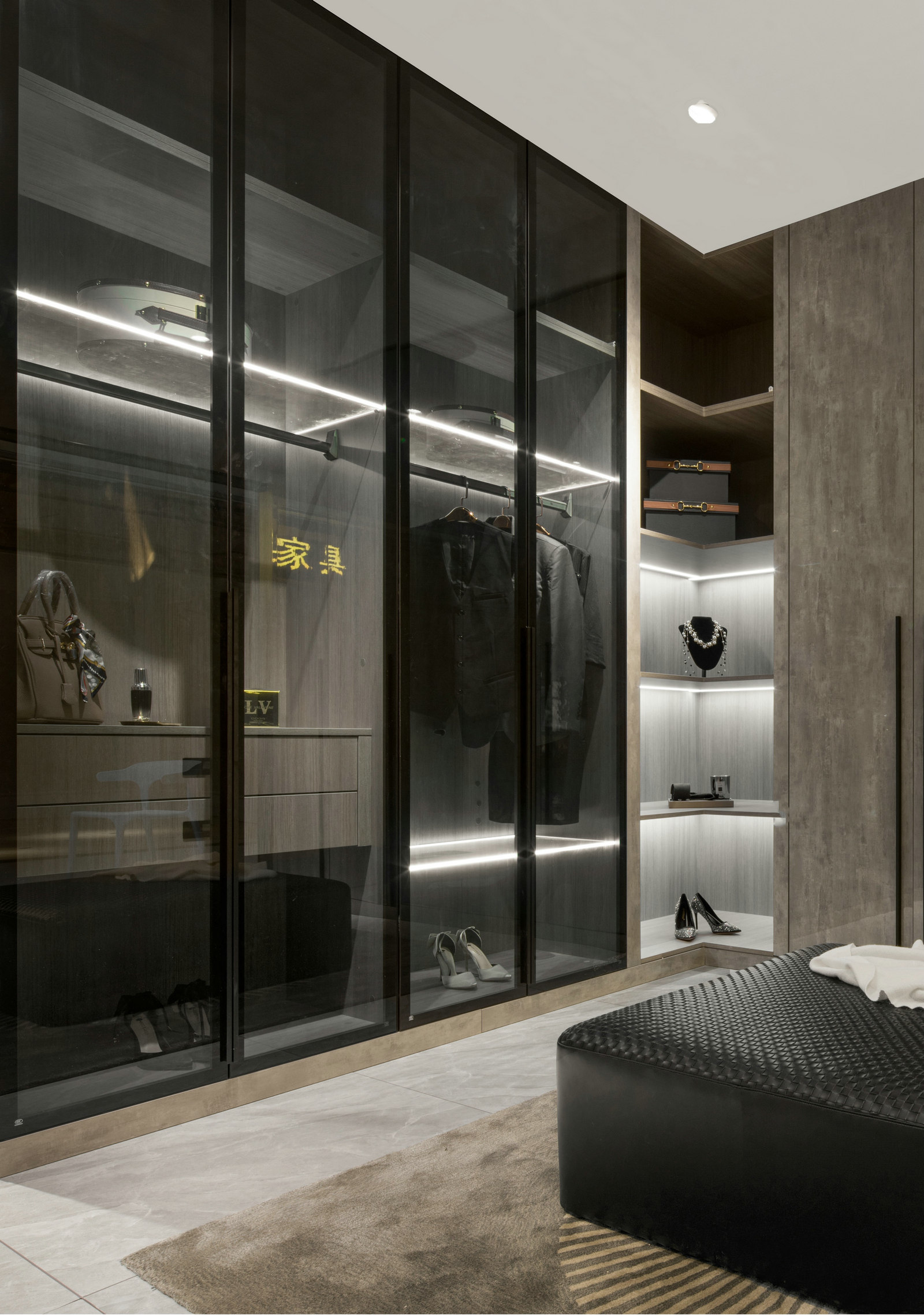 本案為HK.A全屋定制展廳,設計師以現(xiàn)代輕奢風格呈現(xiàn),強調細節(jié),目光所及都是舒服時尚的氣息。輕奢代表一種優(yōu)雅、格調和對生活品質的追求。用k木飾面、金屬線條等不同的材質來賦予空間高級感。