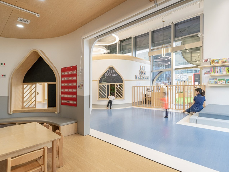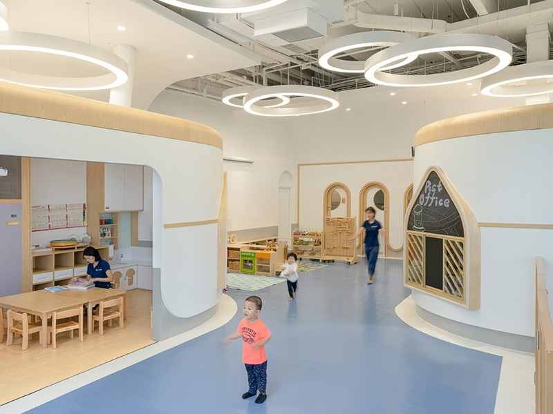 設(shè)計+施工:定位精品全英語教學(xué)早托機構(gòu),與知學(xué)院因應(yīng)市場需求而生,招生人數(shù)為一個班,16個孩子。如何在有限的條件下做出最適合的解決方案,圓道設(shè)計給出答案——“精打細算”,即合理利用空間。希望通過對兒童天性、教學(xué)理念和空間特點的剖析,能夠在有限的空間里創(chuàng)造出不緊迫的尺度關(guān)系,破除“小型機構(gòu)孩子的活動和探索尺度不足”的一貫看法,同時打造充滿樂趣和寬松條件的空間感受。