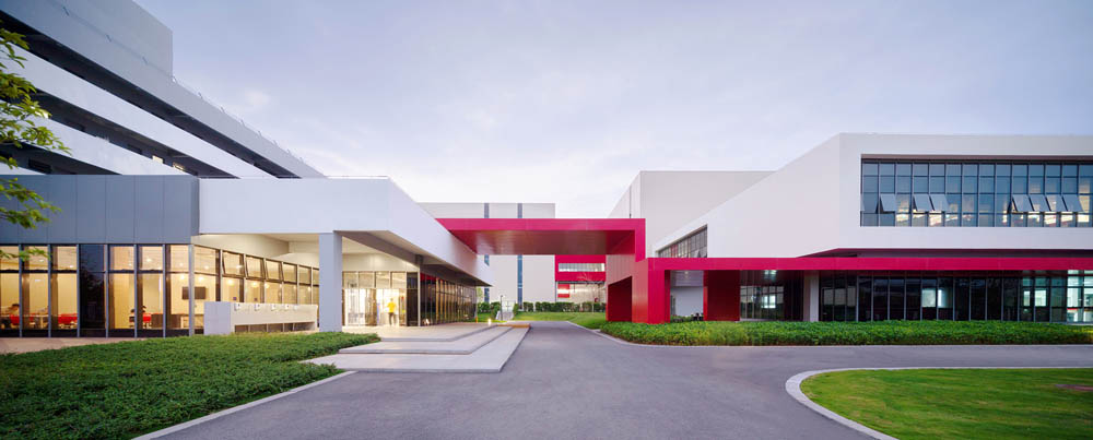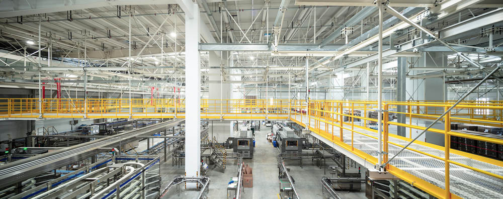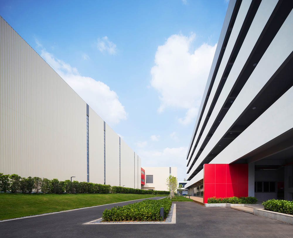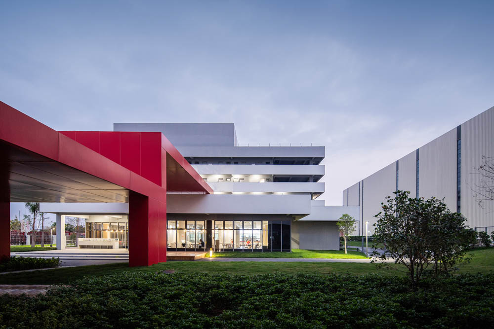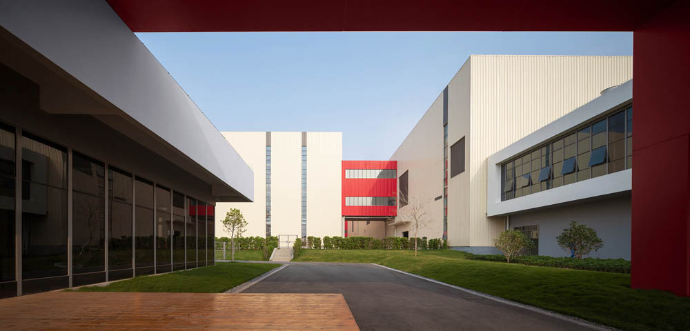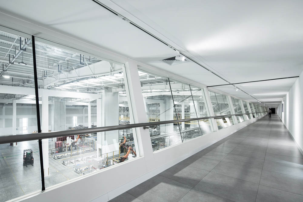 設(shè)計(jì)之初遵循工業(yè)建筑尺度感的同時(shí),還將實(shí)用性、經(jīng)濟(jì)性和流線組織作為設(shè)計(jì)的關(guān)鍵驅(qū)動(dòng)因素。我們借助空間規(guī)劃,塑造了清晰的物流系統(tǒng)、人行系統(tǒng)、車行系統(tǒng)和運(yùn)維系統(tǒng),這些繁雜且清晰的流線,映襯出內(nèi)部管理的邏輯,也構(gòu)成了“大物流”工廠的基礎(chǔ)。