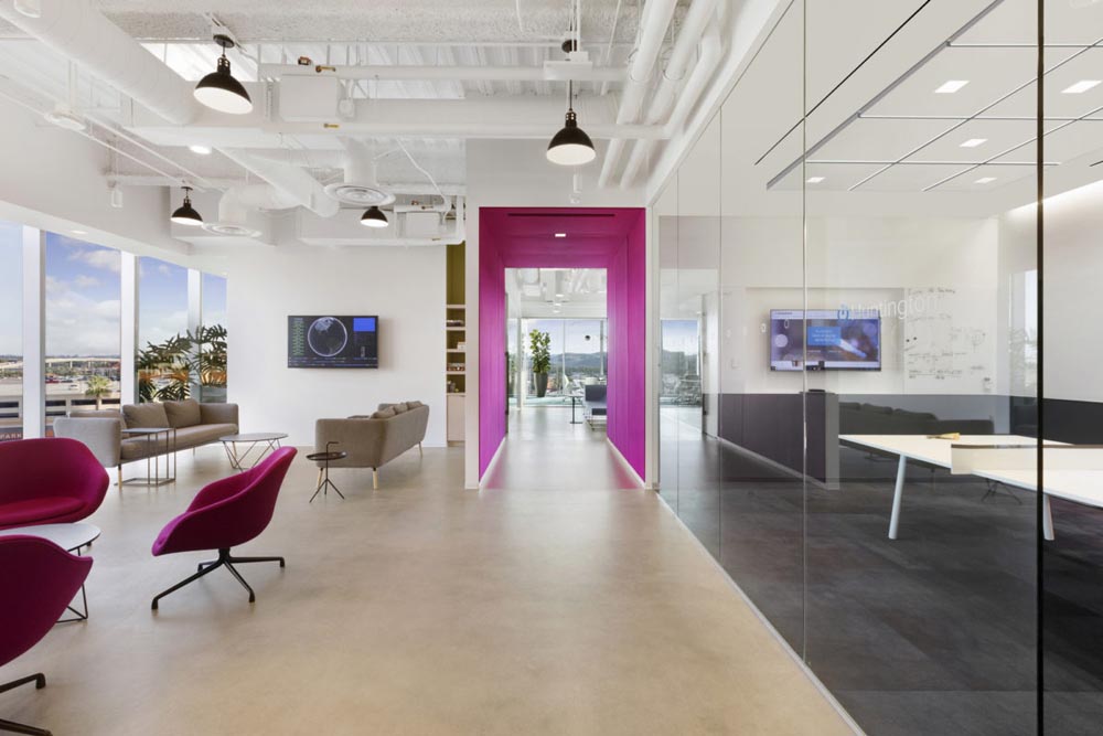 物聯(lián)網(wǎng)、干凈、精致、輕松、開放、透明,整個(gè)項(xiàng)目都使用了一個(gè)亮白色的底座托盤,利用客戶強(qiáng)大的品牌標(biāo)識(shí)和輕松的氛圍,希望打造干凈、精致、輕松的辦公空間。
