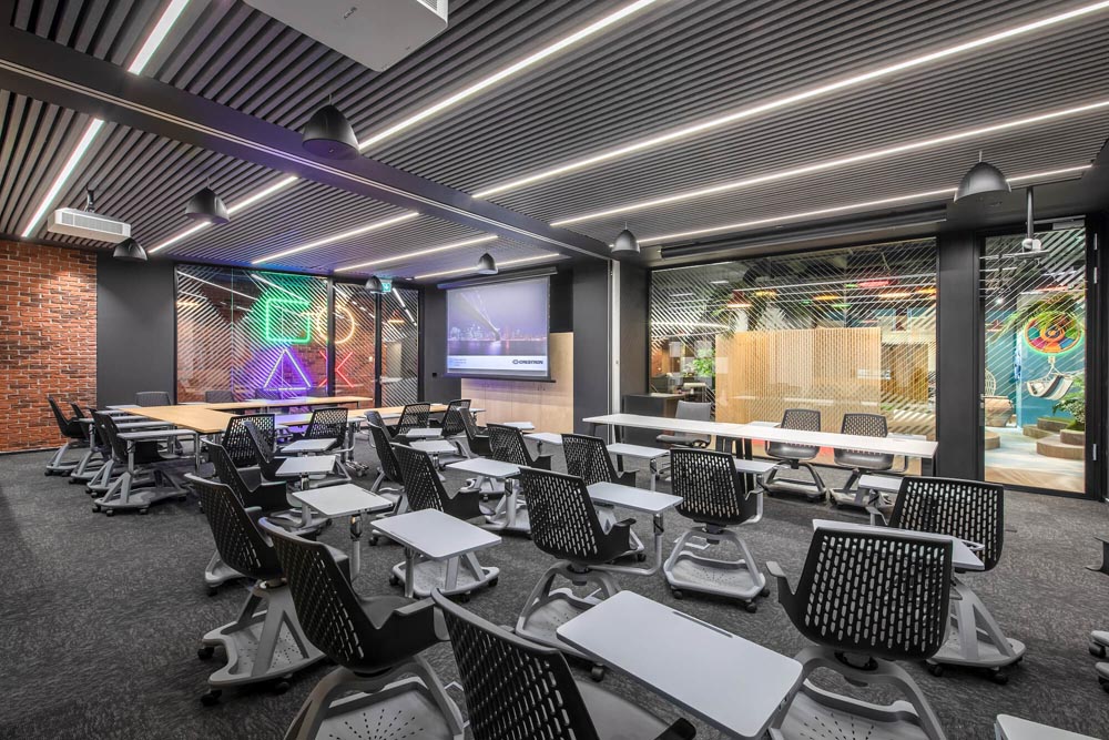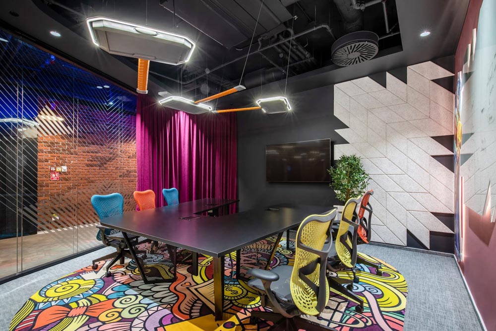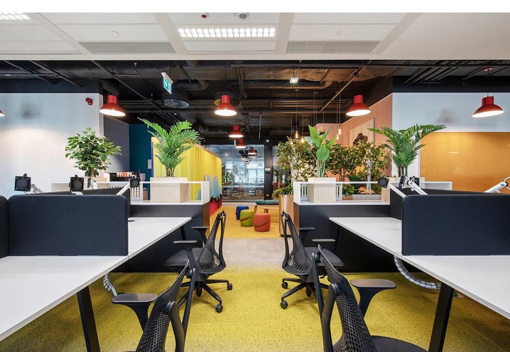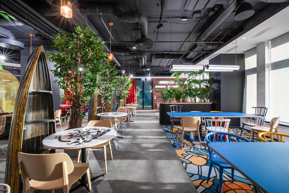 游戲場景、開放協(xié)作多元、綠植、休閑工業(yè)風(fēng),空間以鮮明的色彩配,以特別定制的照明設(shè)備加以強(qiáng)化和凸顯,為員工塑造一個親和舒適、充滿創(chuàng)意的工作環(huán)境。