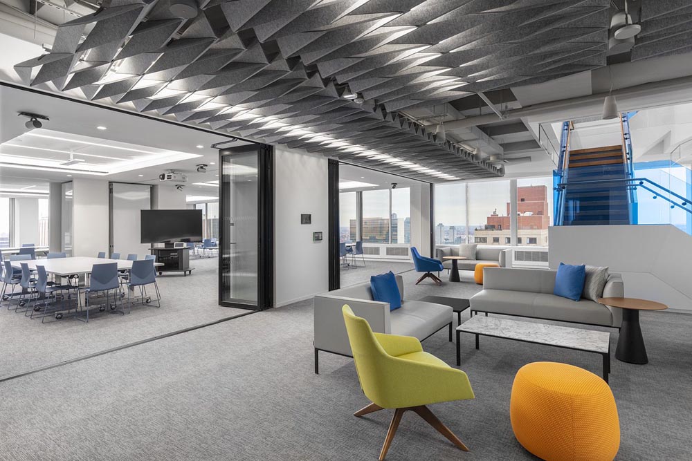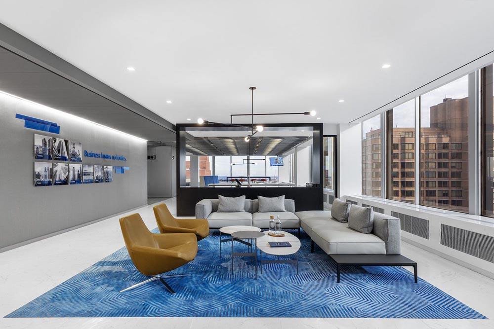 科技、前沿科技應用、開放協(xié)作多元、品牌詮釋、簡約摩登、原木、藍色,設計團隊將移動應用等前沿技術兼容進各大型和小型的會議室中。同時主會議區(qū)域兼做工作區(qū)來使用,打造透明、技術和協(xié)作文化的空間。
