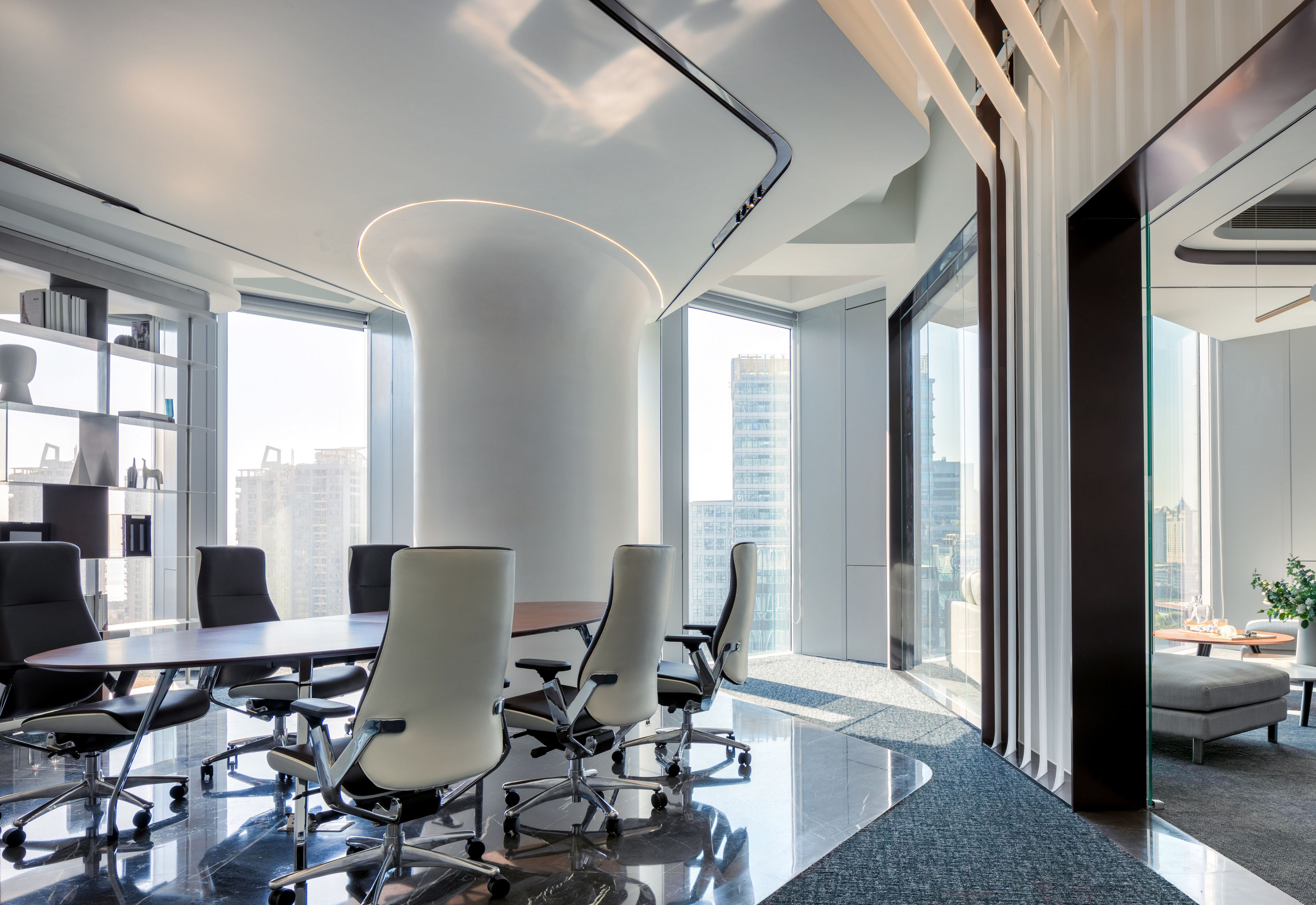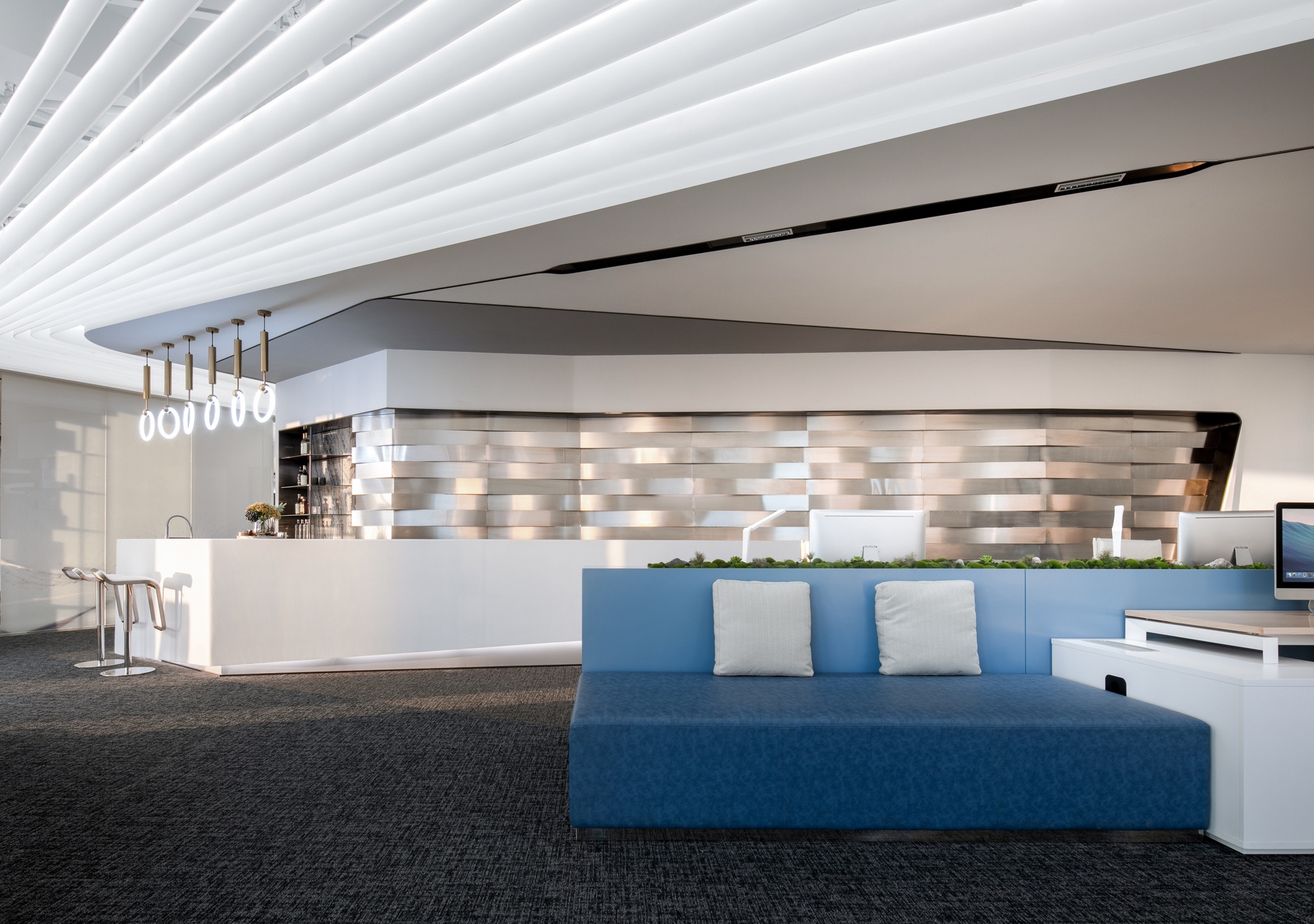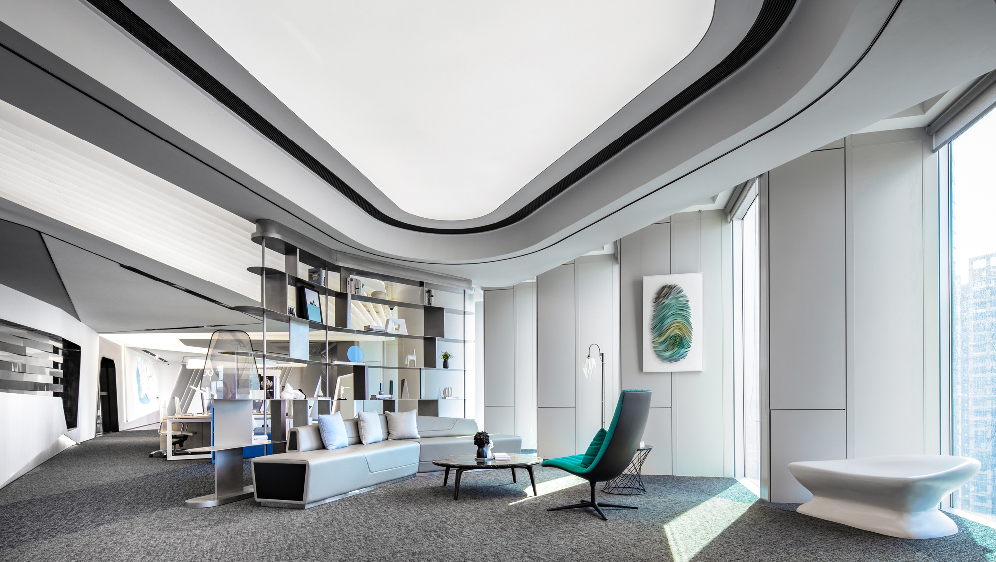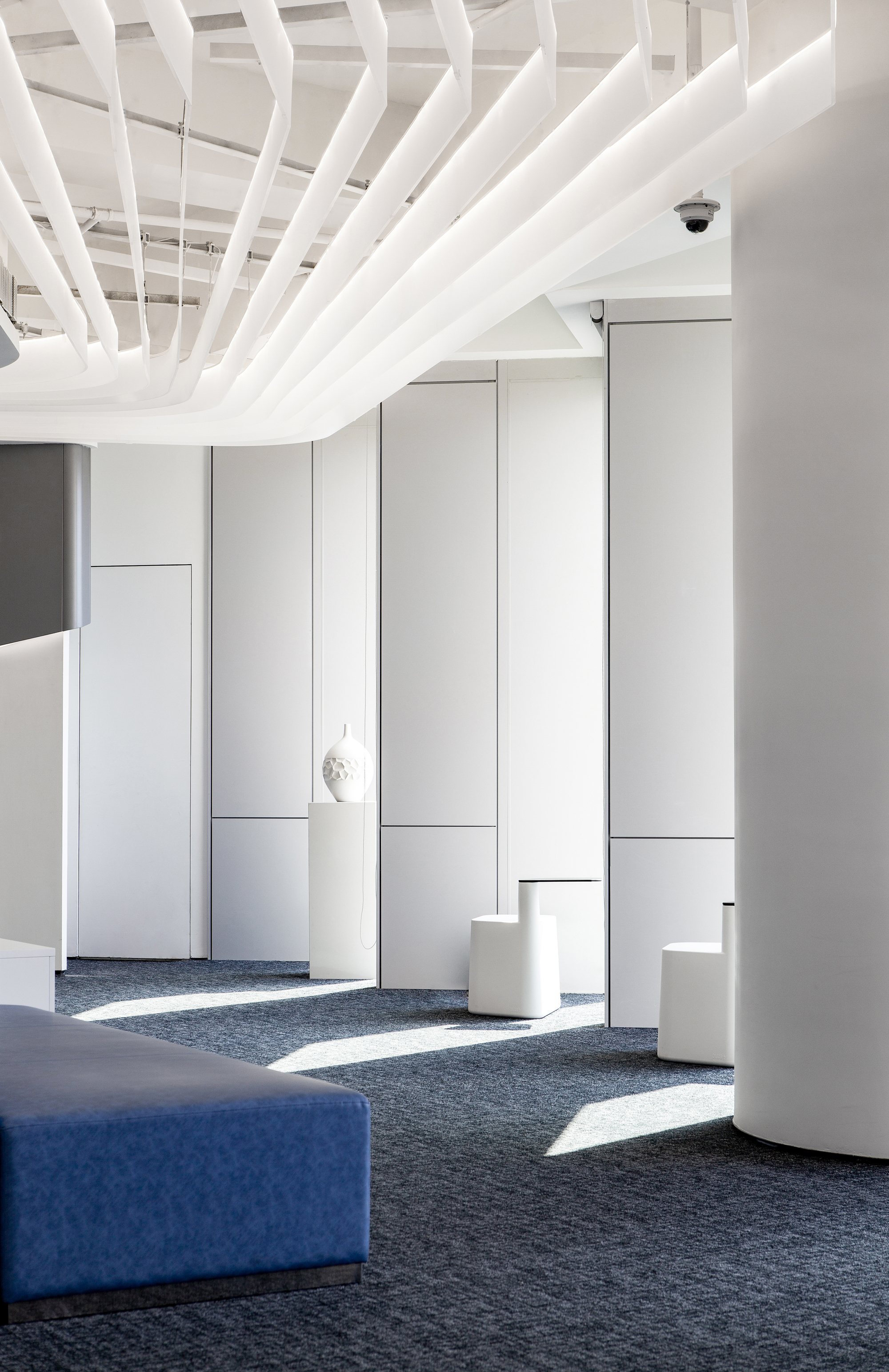 光是一種無形無聲的語言 品質彰顯于燈光之下,光影帶動感情升華 自然光線與筒燈、燈帶等廳內光源相結合 在交織輝映中為空間譜寫光影旋律,展示廳內的空間形體以圓弧與曲面為主 輕盈靈動的線、面賦予固體更多表情變換 些許鮮麗的顏色點綴在素潔純凈的大廳內,煥發(fā)出宛如白瓷上釉般的流光溢彩。