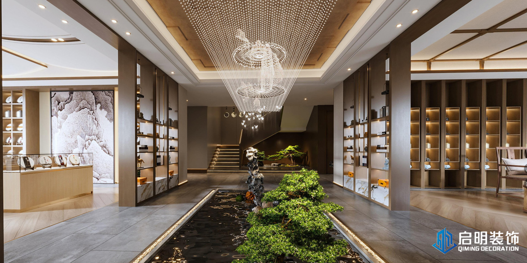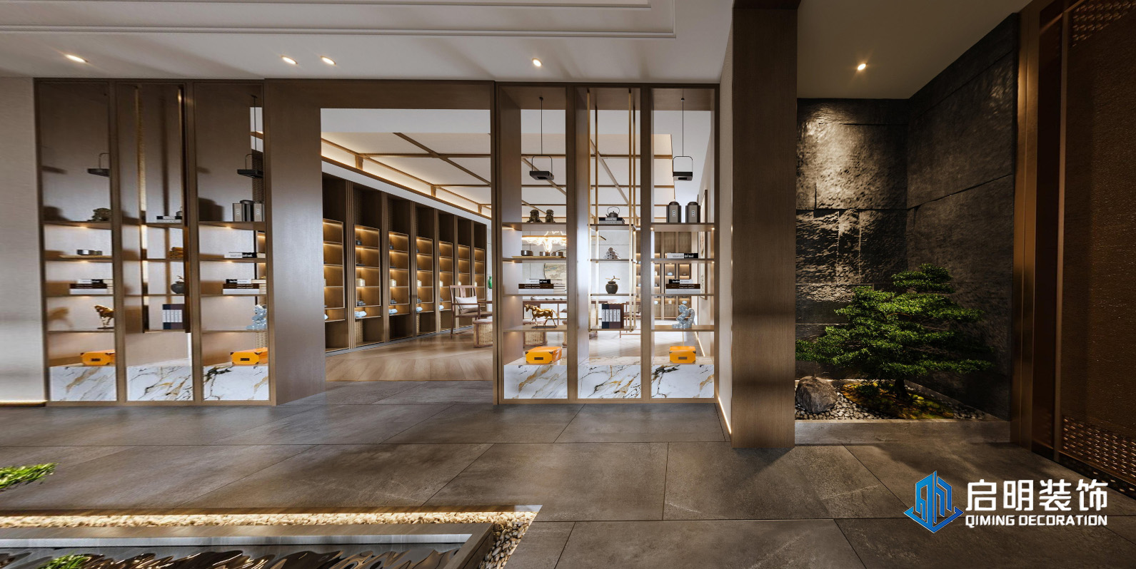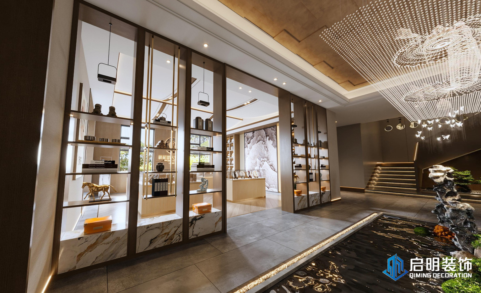 新中式會所的設(shè)計理念,是對傳統(tǒng)東方美學(xué)的一次現(xiàn)代詮釋,融合了豪華輕奢的風格,旨在打造一個既典雅又時尚的休閑空間。 門廳的設(shè)計尤為匠心獨運,中心位置的水池和綠植成為了空間的靈魂。水池的流水聲與綠植的自然氣息,瞬間讓人忘卻城市的喧囂,進入一個寧靜的東方世界。 會所內(nèi)部,木色繼續(xù)扮演著主角,而細節(jié)處的金色線條和裝飾,則透露出輕奢的韻味。這種色彩與材質(zhì)的搭配,既體現(xiàn)了新中式的簡潔大氣,又不失奢華感。每一處設(shè)計都經(jīng)過精心考量,從家具的選材到裝飾品的擺放,無不展現(xiàn)出對品質(zhì)生活的追求。
