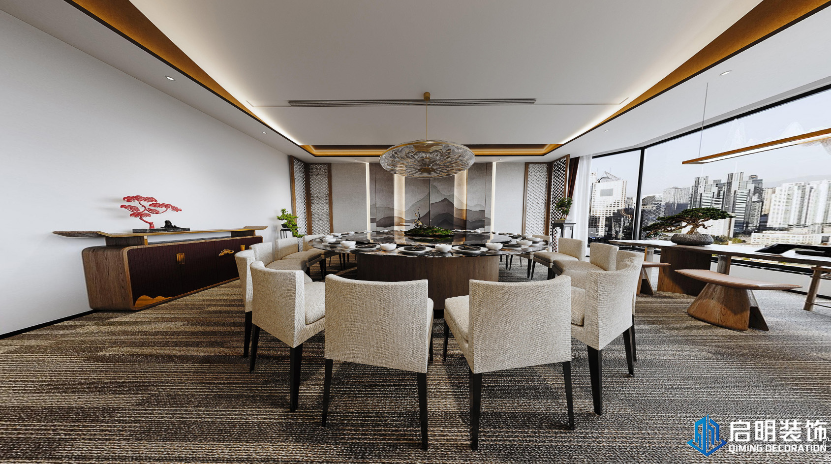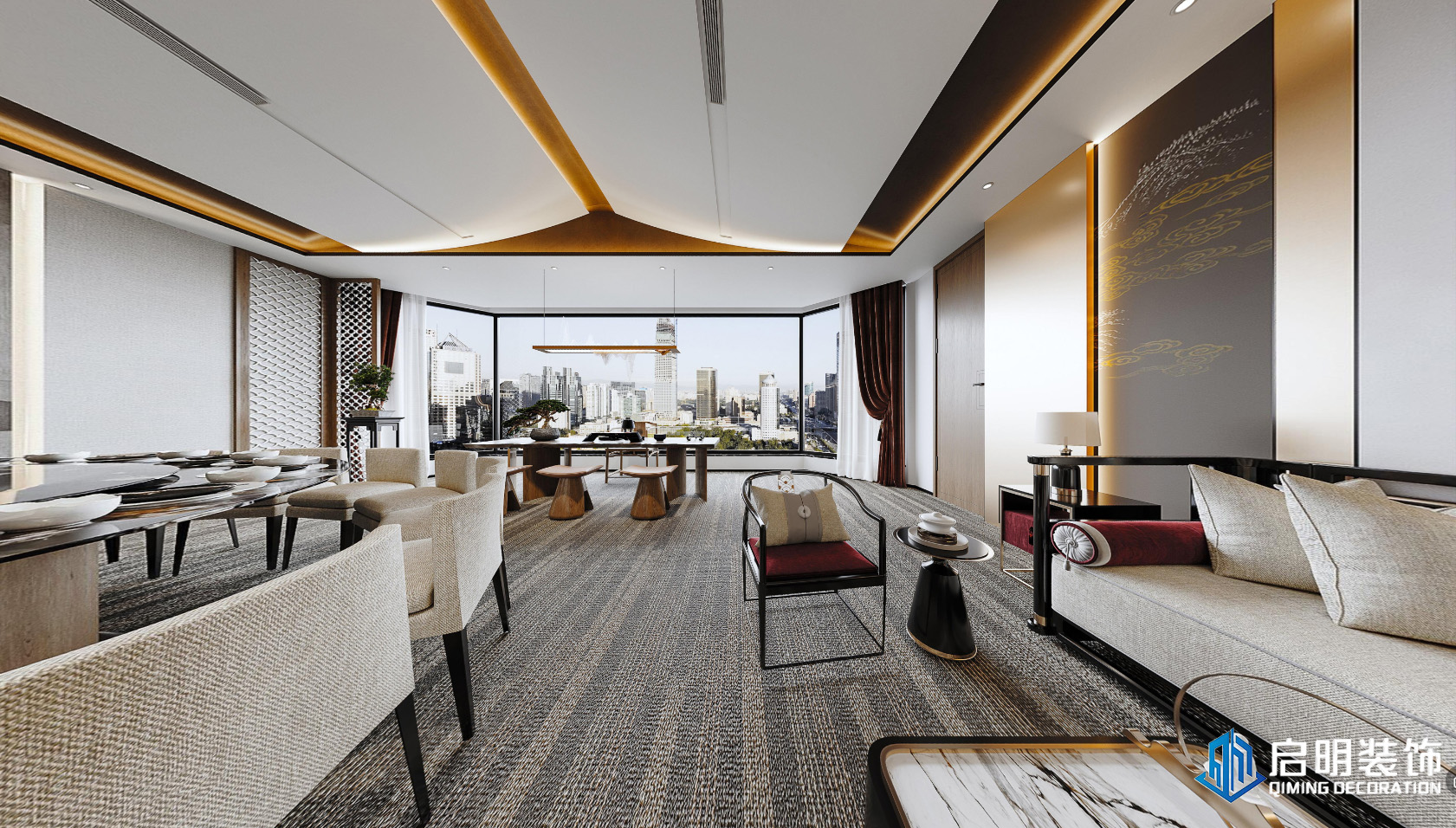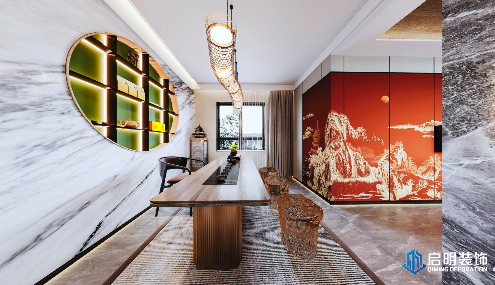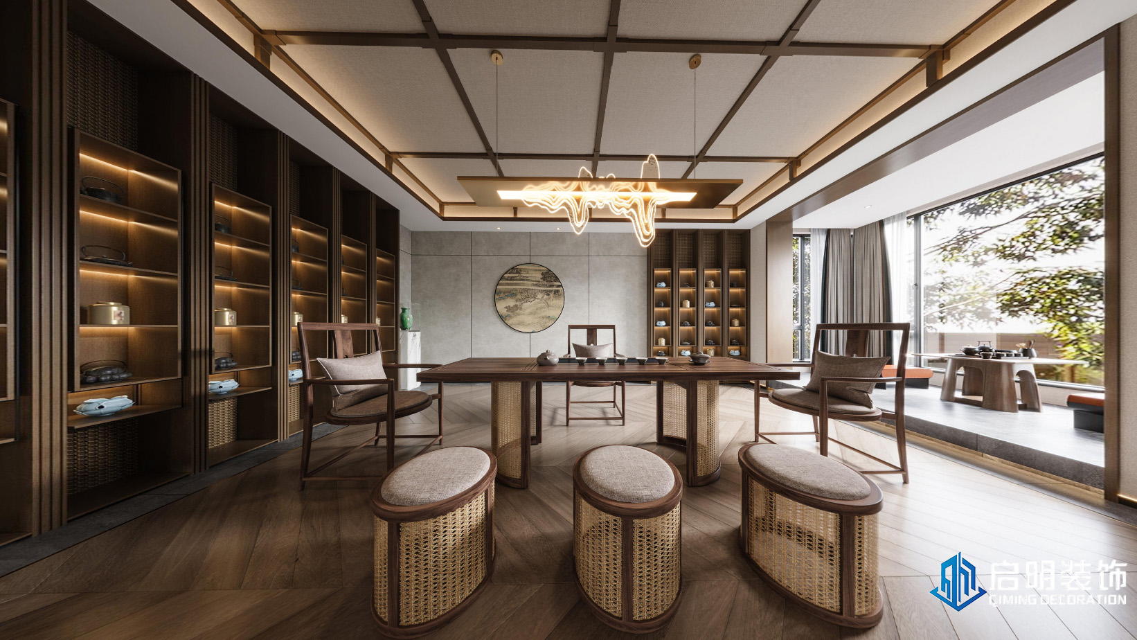 新中式會所的設(shè)計理念,是對傳統(tǒng)東方美學(xué)的一次現(xiàn)代詮釋,融合了豪華輕奢的風格,旨在打造一個既典雅又時尚的休閑空間。 門廳的設(shè)計尤為匠心獨運,中心位置的水池和綠植成為了空間的靈魂。水池的流水聲與綠植的自然氣息,瞬間讓人忘卻城市的喧囂,進入一個寧靜的東方世界。 會所內(nèi)部,木色繼續(xù)扮演著主角,而細節(jié)處的金色線條和裝飾,則透露出輕奢的韻味。這種色彩與材質(zhì)的搭配,既體現(xiàn)了新中式的簡潔大氣,又不失奢華感。每一處設(shè)計都經(jīng)過精心考量,從家具的選材到裝飾品的擺放,無不展現(xiàn)出對品質(zhì)生活的追求。
