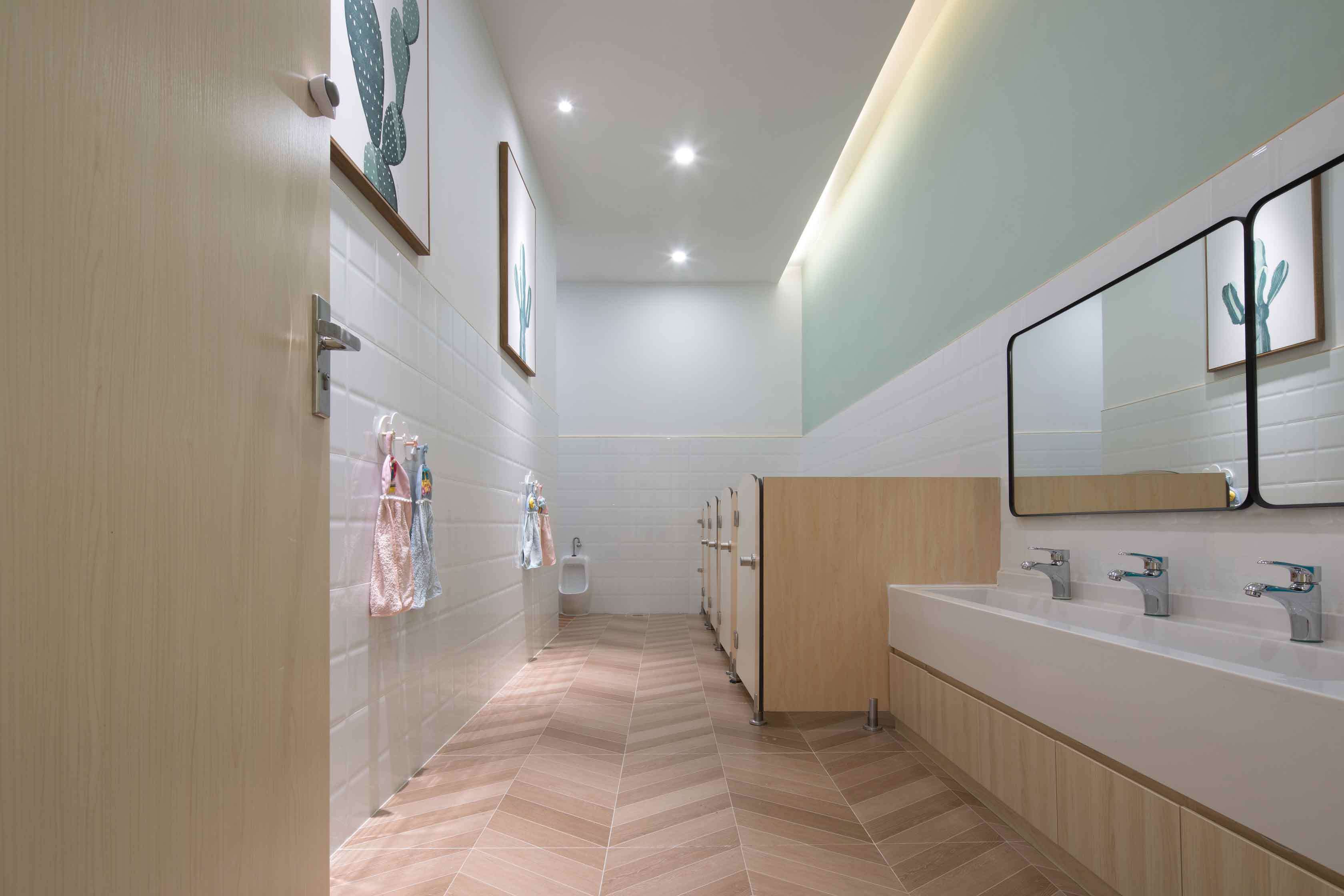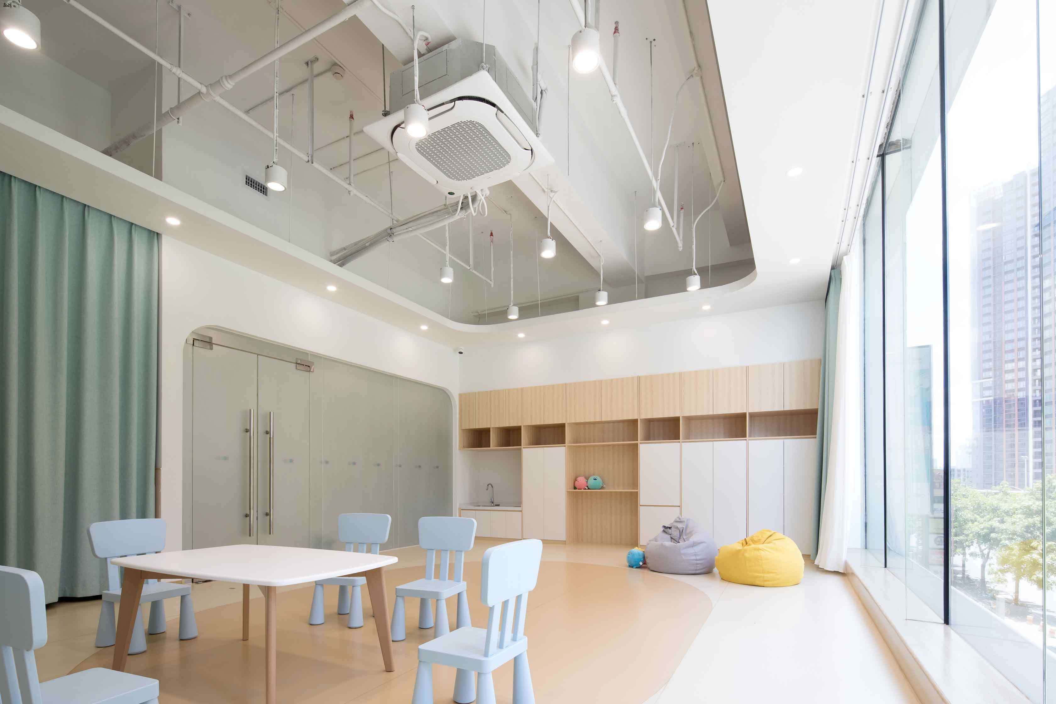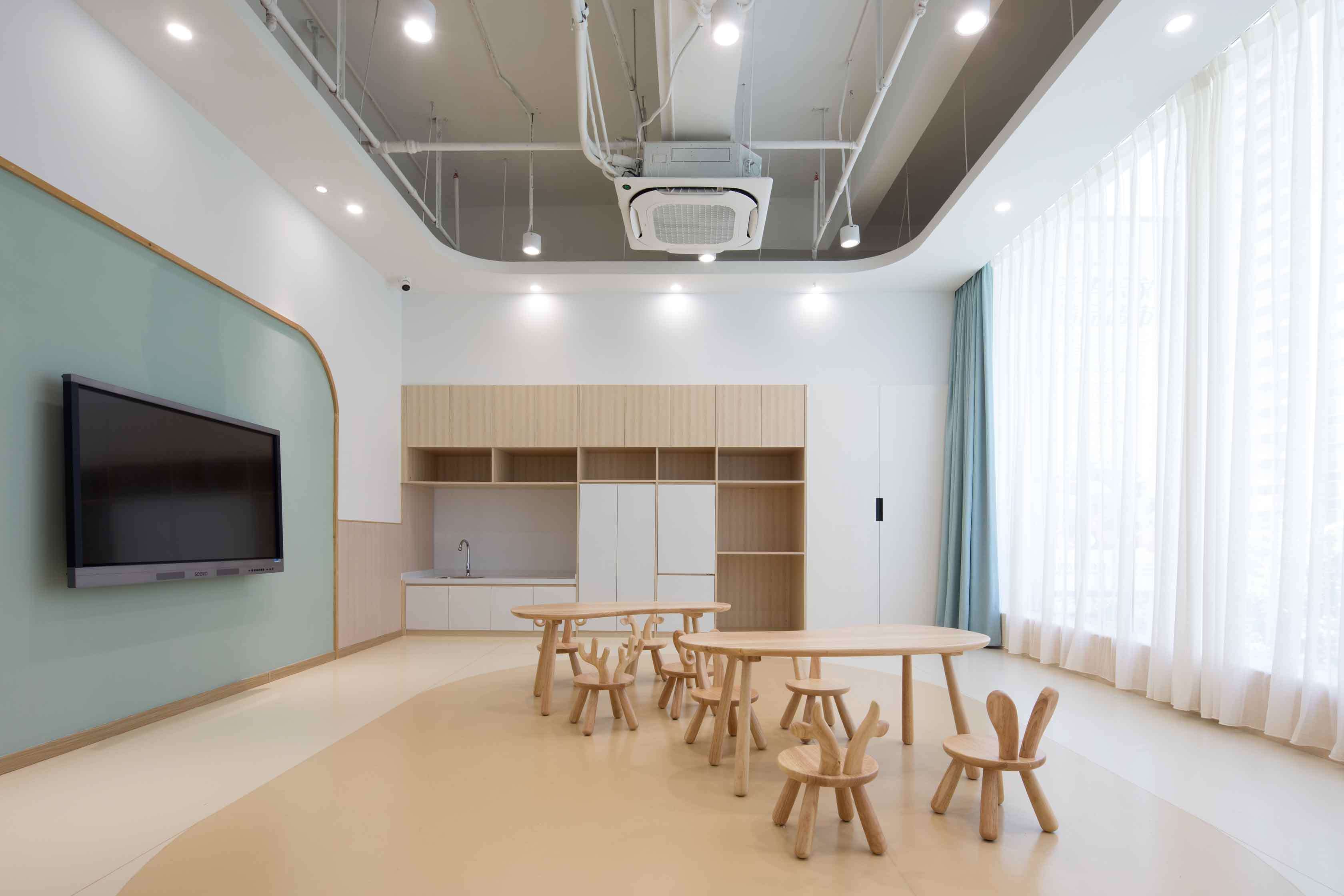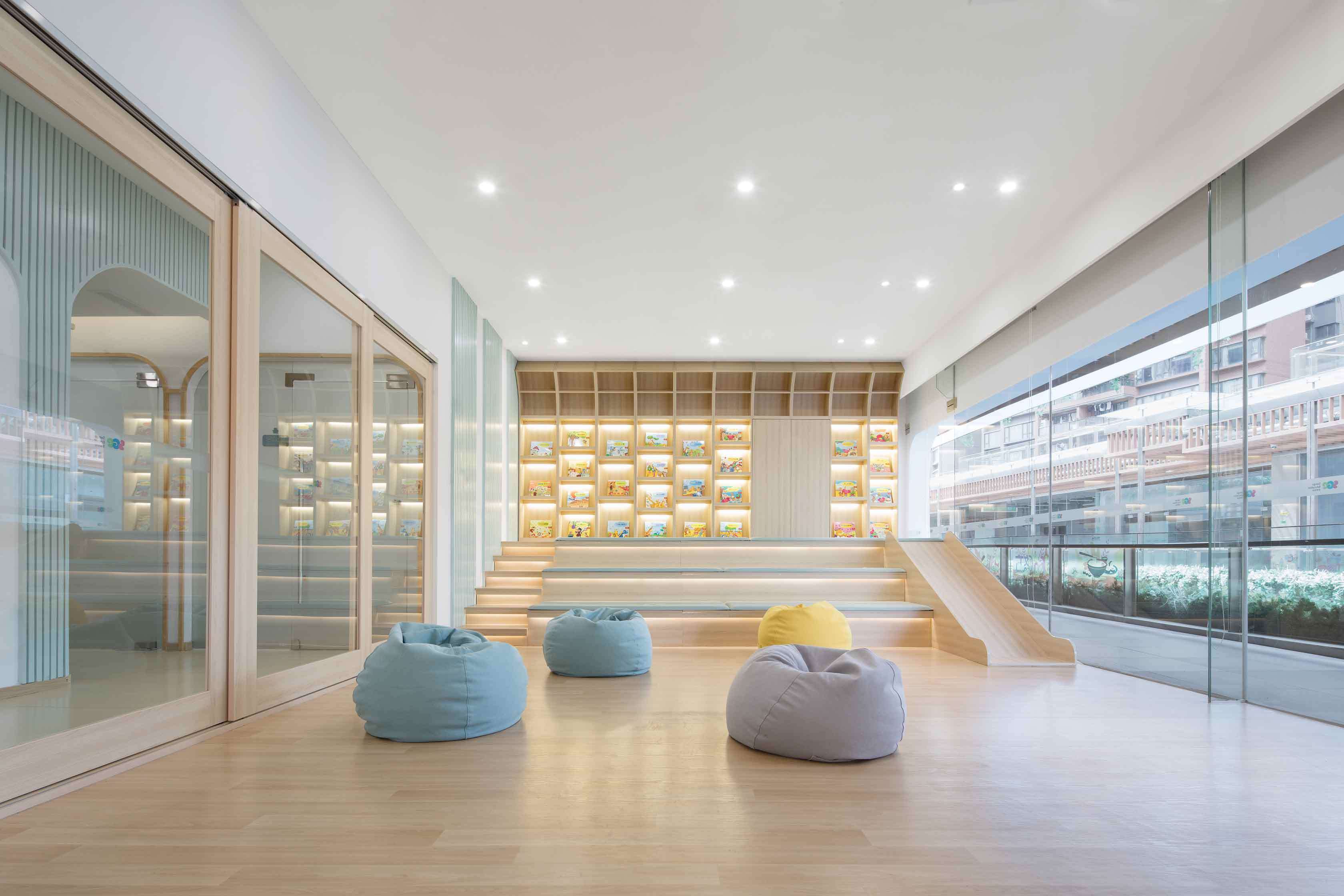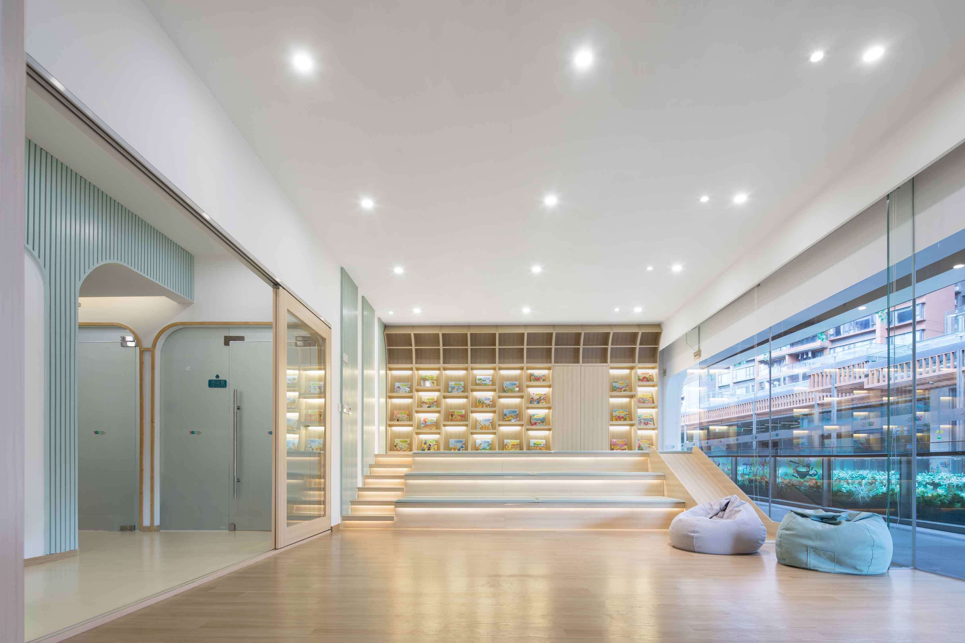 合理利用空間。希望通過對(duì)兒童天性、教學(xué)理念和空間特點(diǎn)的剖析,能夠在有限的空間里創(chuàng)造出不緊迫的尺度關(guān)系,破除“小型機(jī)構(gòu)孩子的活動(dòng)和探索尺度不足”的一貫看法,同時(shí)打造充滿樂趣和寬松條件的空間感受。