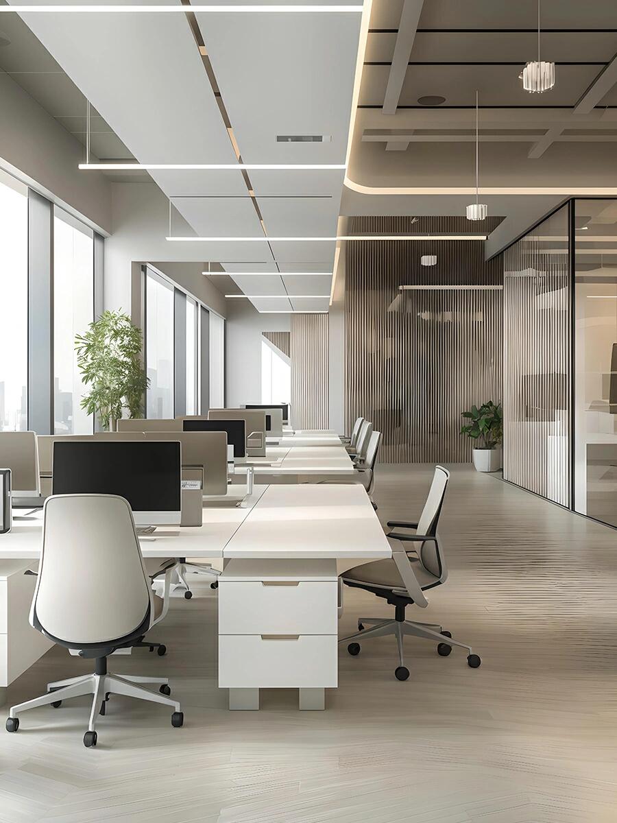1. 采用 PVC 地板替代石材,地面成本節(jié)省 40% 以上;2. 簡約平頂設(shè)計省去復(fù)雜吊頂開支;3. 模塊化辦公家具降低定制成本