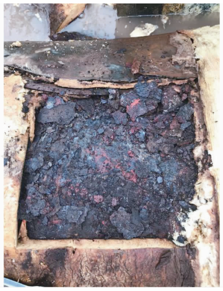 圖9 架空敷設(shè)保溫管道工作鋼管表面的層狀腐蝕產(chǎn)物