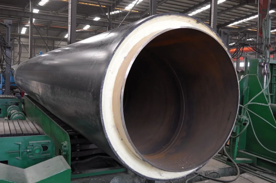 “硬質(zhì)聚氨酯噴涂聚乙烯纏繞預制直埋保溫管” 由工作鋼管(芯管),噴涂聚氨酯保溫層,擠出聚乙烯外護層組成。