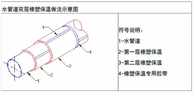 ⑤.一般工程冷凍水管保溫層最厚為60mm,需要分2層進(jìn)行保溫,其做法如下圖所示: