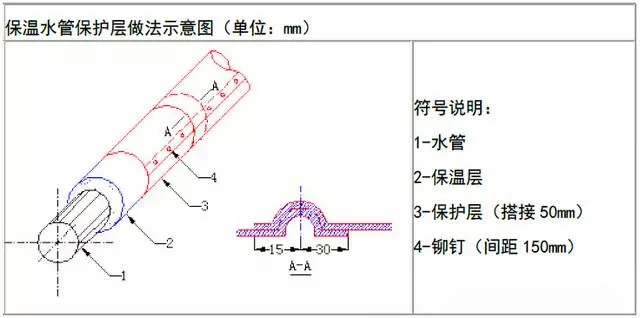 ③.立管應(yīng)自下而上,水平管應(yīng)從管道低點(diǎn)向高處順序進(jìn)行。保護(hù)層端頭應(yīng)封閉。
