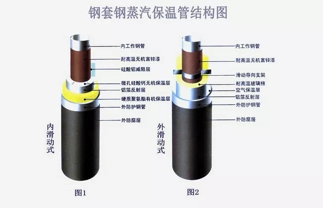 鋼套鋼保溫管保溫結(jié)構(gòu)依據(jù)滑動(dòng)方式不同分為:內(nèi)滑動(dòng)式與外滑動(dòng)式